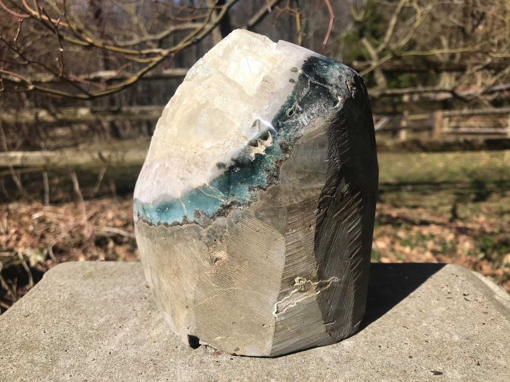 This geode measures 140 x 122 x 102 (5.51" x 4.80" x 4.01") and weighs 4 pounds, 13.5 oz (2196 g).