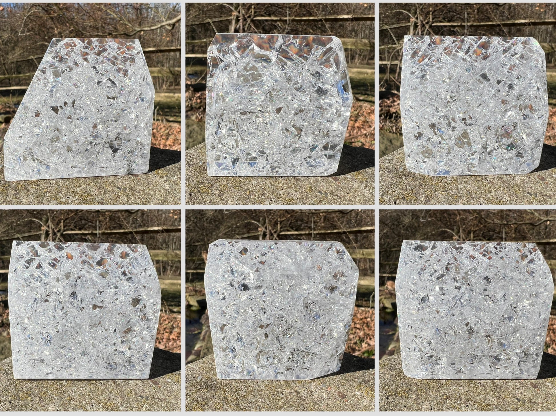 Fire & Ice Quartz is achieved when an exceptionally clear, natural quartz crystal is heated and then submerged in water. This achieves its unique fracturing which results in beautiful, tiny rainbows.