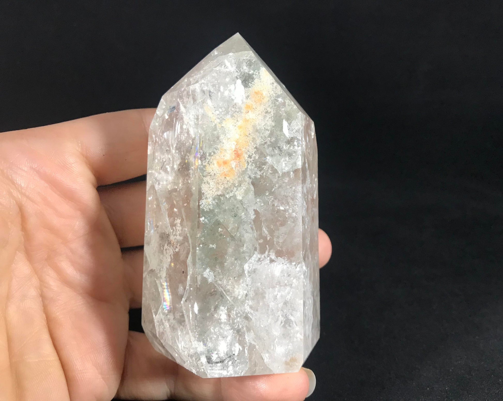 This large Included Fire & Ice quartz tower from Brazil is absolutely gorgeous! It features some beautiful inclusions of Chlorite and tiny rainbows. Pictures do not do it justice! This unique beauty would make a wonderful addition to any crystal collection.