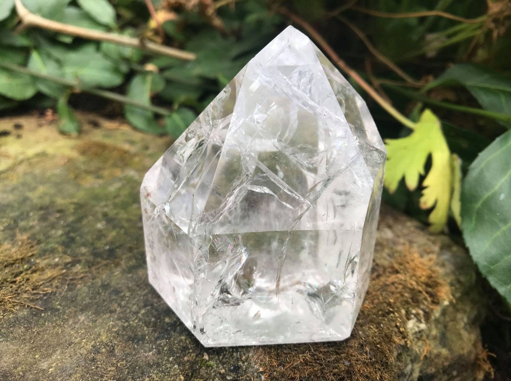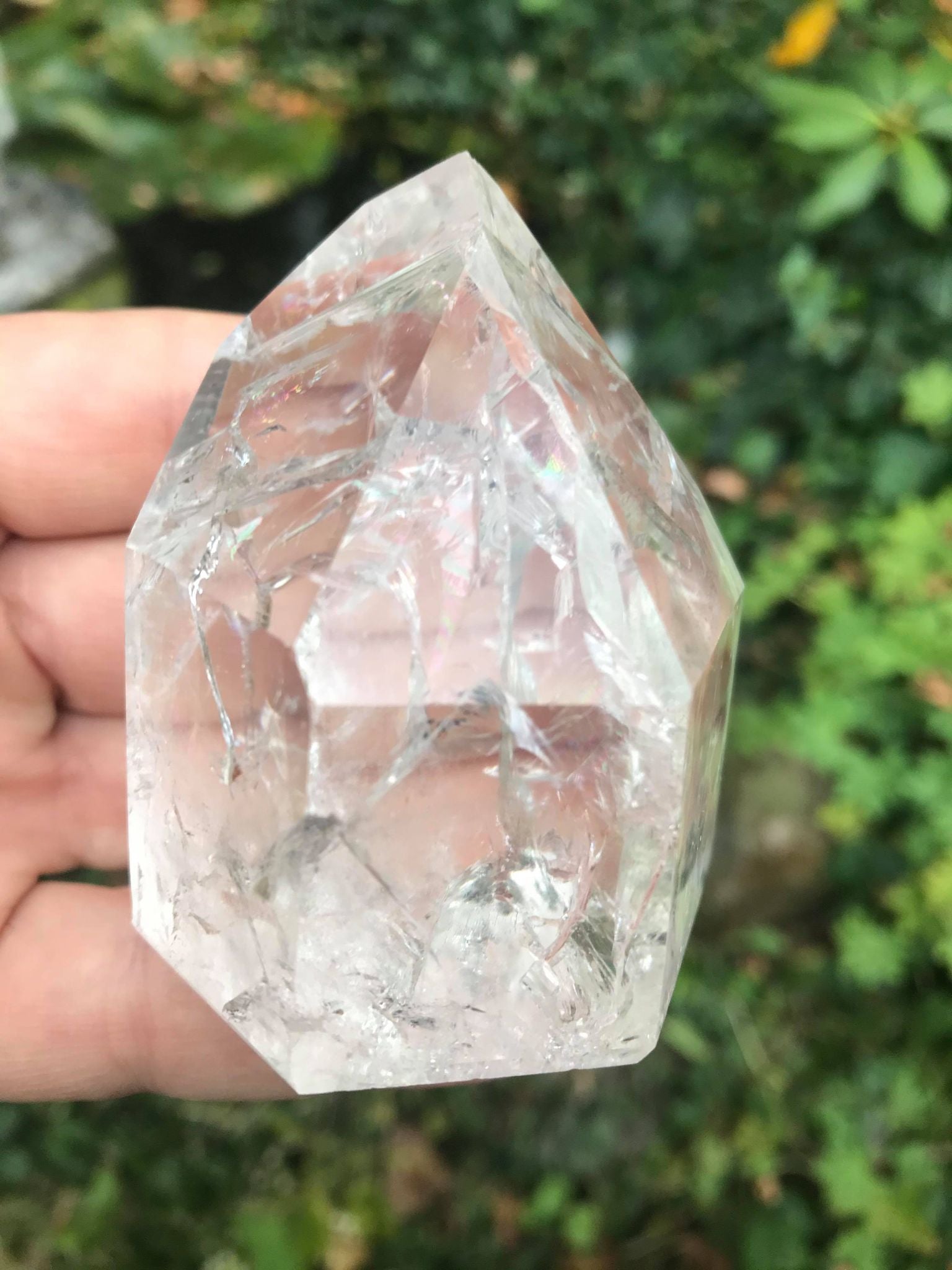 This Fire & Ice quartz tower from Brazil is absolutely gorgeous! It is remarkably clear and full of rainbows. It also has some light inclusions of green Chlorite. Pictures do not do it justice!