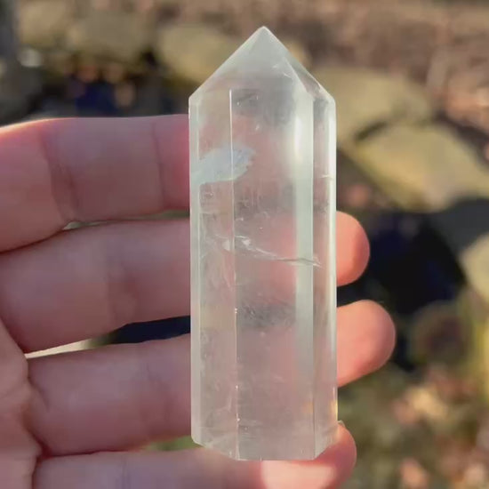 This pale green fluorite tower is a high-clarity polished crystal point with exceptional transparency and luminous natural color. Carefully shaped to enhance its structure, this fluorite crystal tower reveals delicate internal inclusions and subtle natural patterning that catch and reflect the light beautifully.