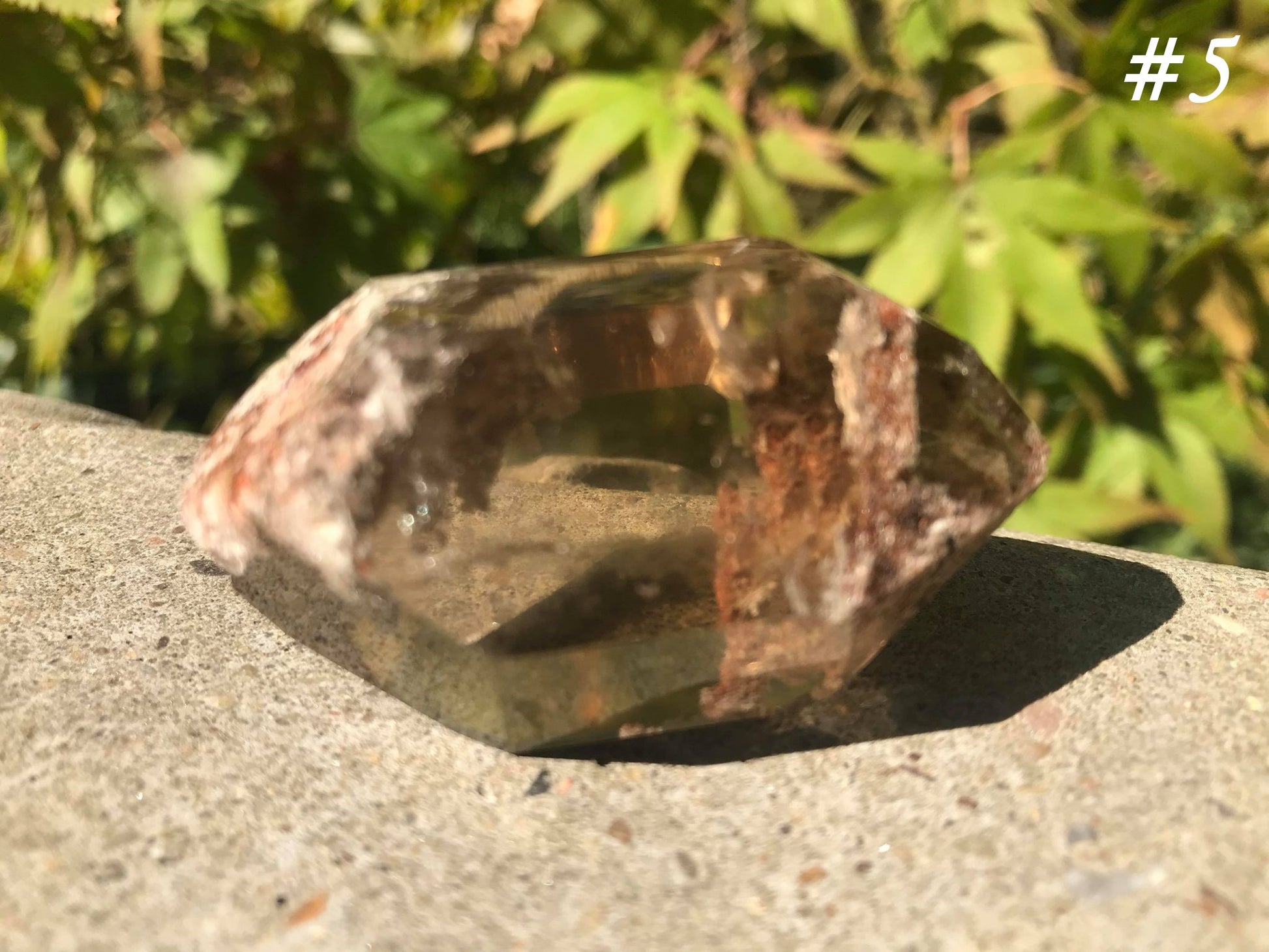 These little double-terminated freeform Garden Quartz points from Brazil are such works of art! Semi-polished with a natural back, their clarity is remarkable. Each features a stunning world of Chlorite and/or Hematite inside. They stand on their sides beautifully and would make a wonderful addition to any crystal collection.