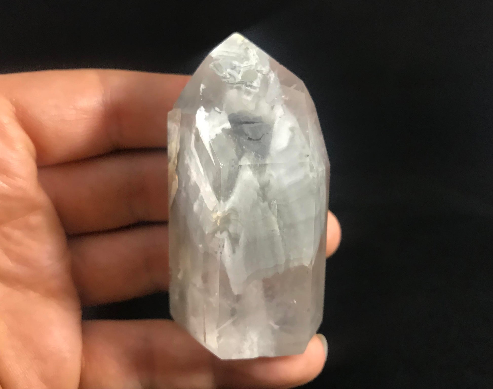 This Garden Quartz Tower is such a work of art! It is remarkably clear and packed full of gorgeous grey and white Chlorite inclusions. This unique beauty would make a wonderful addition to any crystal collection.