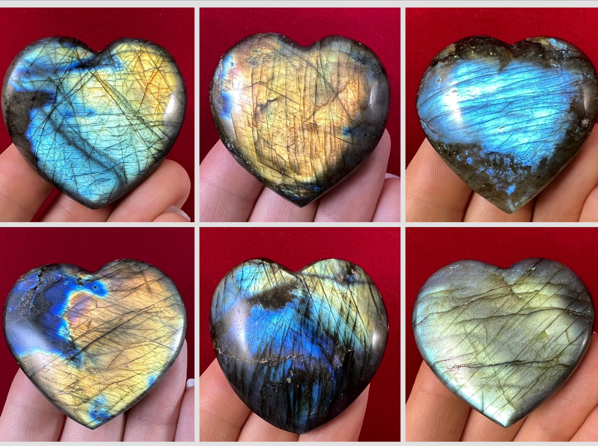 These Labradorite hearts from Madagascar are absolutely stunning. Each features beautiful flash. They would make a wonderful addition to any crystal collection.