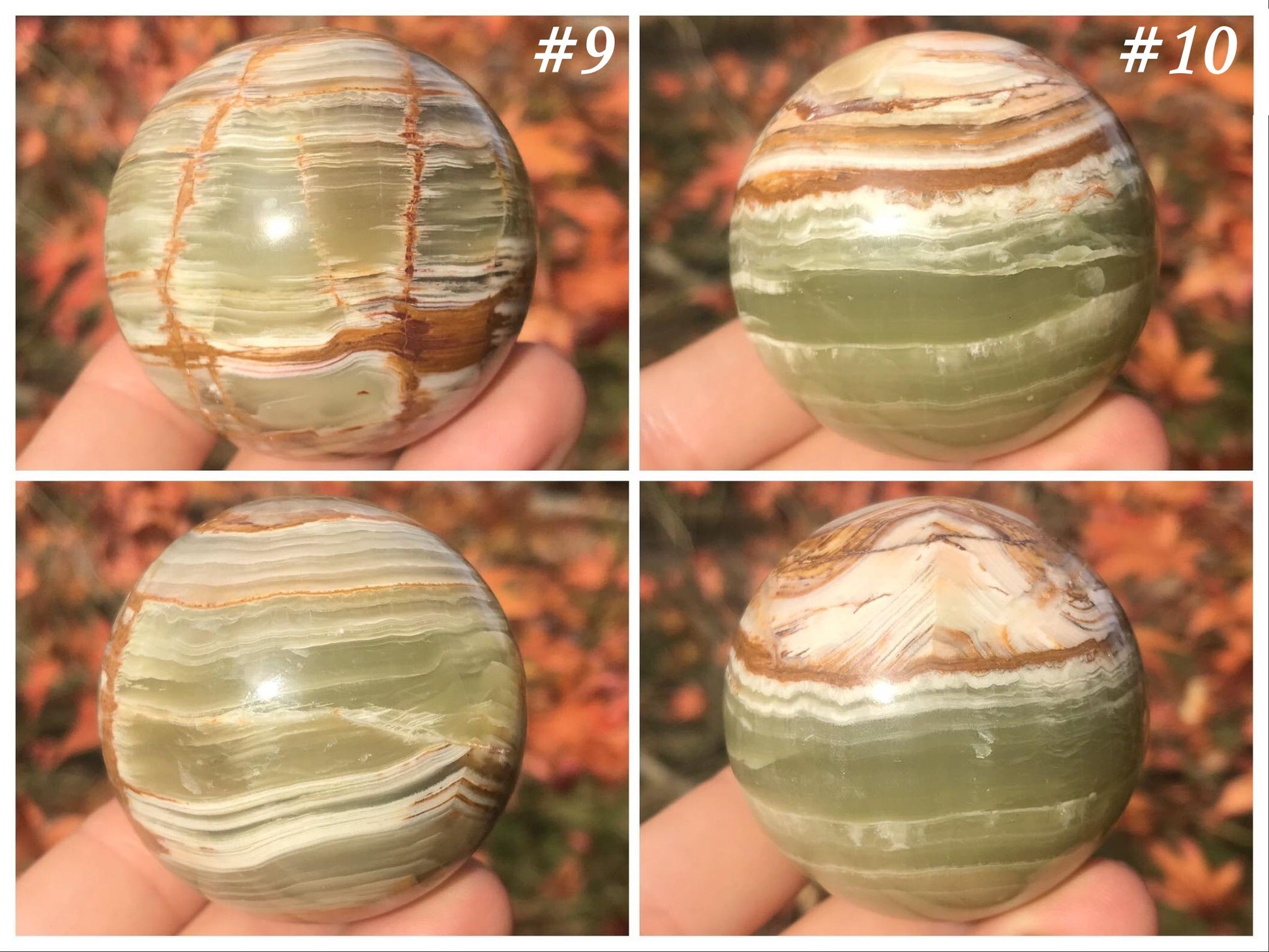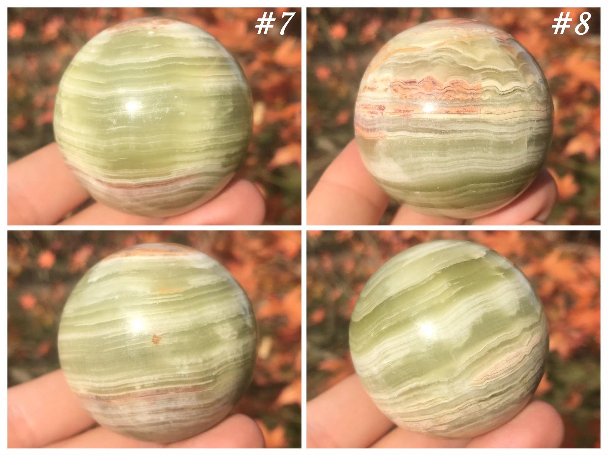These Green Banded Calcite spheres are absolutely spectacular! The quality, patterning and colors are truly spectacular. They would make a wonderful addition to one's crystal collection and home decor.