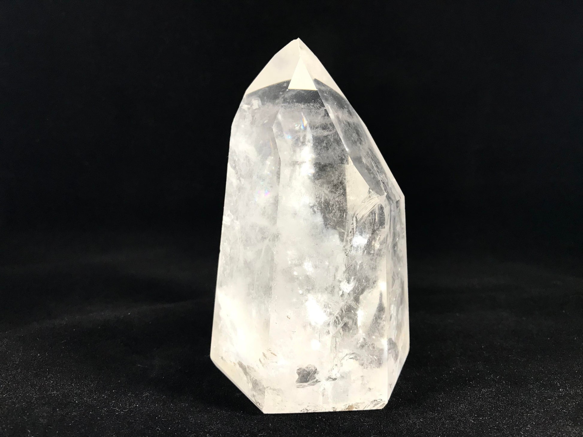 This large high quality quartz crystal tower from Brazil is remarkably beautiful! It has a beautiful shape, wonderful clarity and features some stunning rainbows in the center in certain lights. This beauty would make a wonderful addition to any crystal collection.