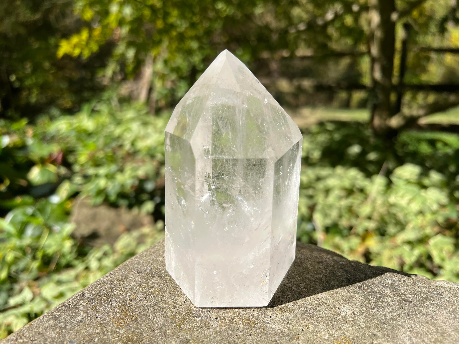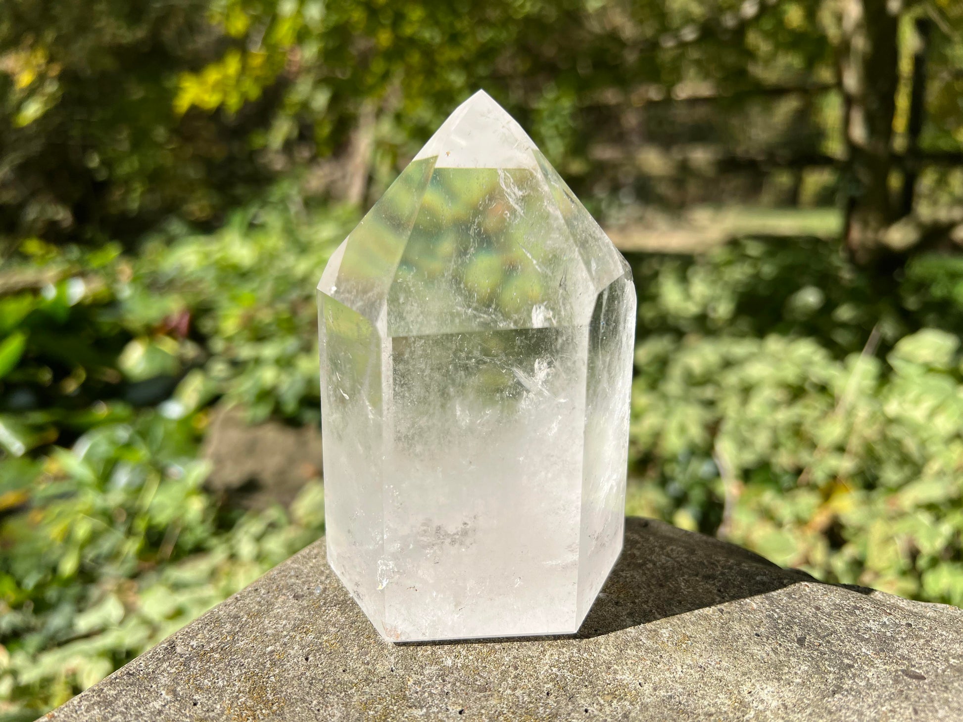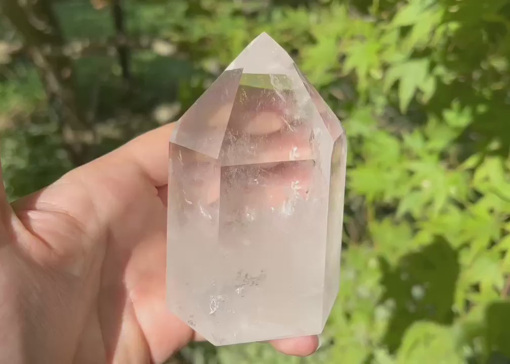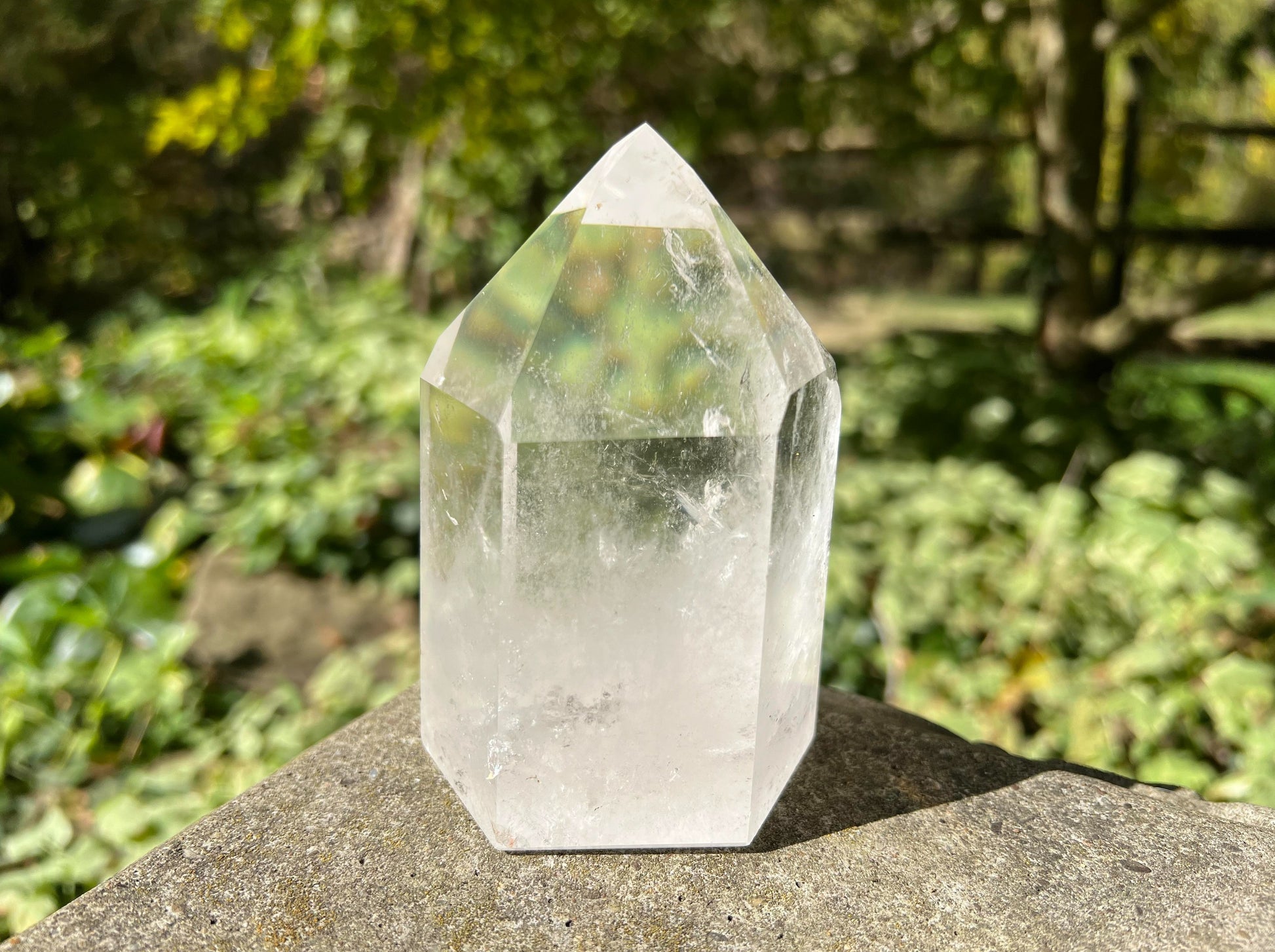 This high quality large quartz crystal tower from Brazil is remarkably clear and beautiful! It also features some beautiful rainbows. This beauty would make a wonderful addition to any crystal collection.