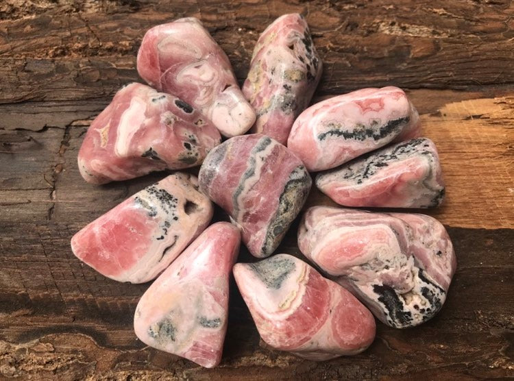 These rare Rhodochrosite tumbled stones from Brazil are absolutely stunning! Hand-chosen for quality, they are full of unique patterns. They would make a wonderful addition to any crystal collection.