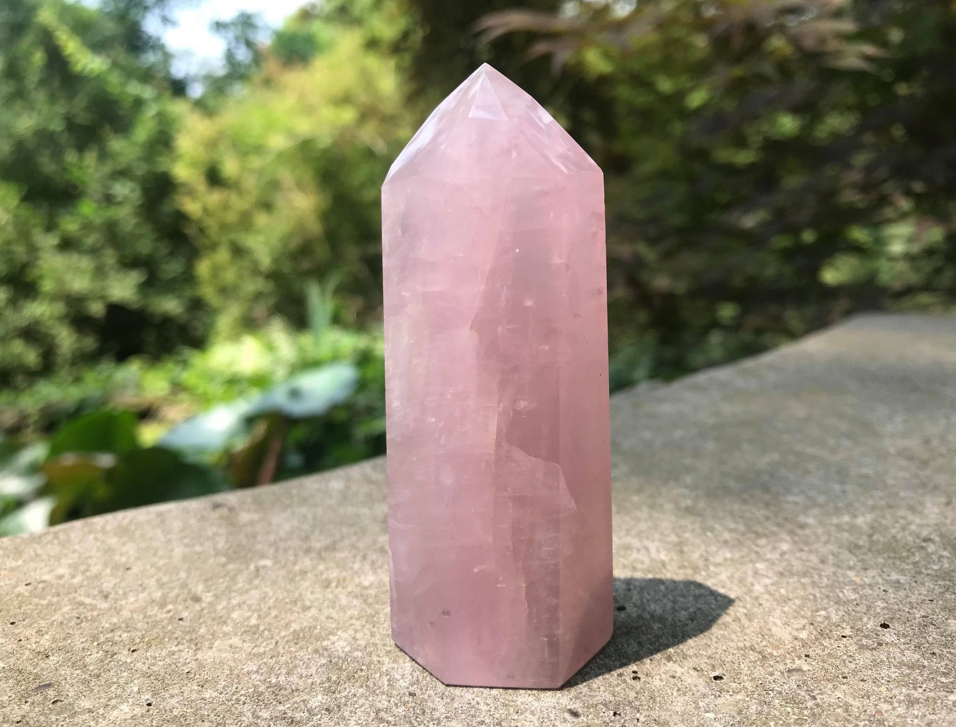 Crystal Lore: Rose Quartz is known traditionally as a crystal of pure love in all its forms. The energy of this crystal is very soft, gentle, silky and calming. A favorite tool of crystal healers, it soothes, opens and heals the heart and helps one cultivate self-love. It is also a popular stone for relationships. Place a Rose Quartz tower in your space to attract more positive energy and love in your life.