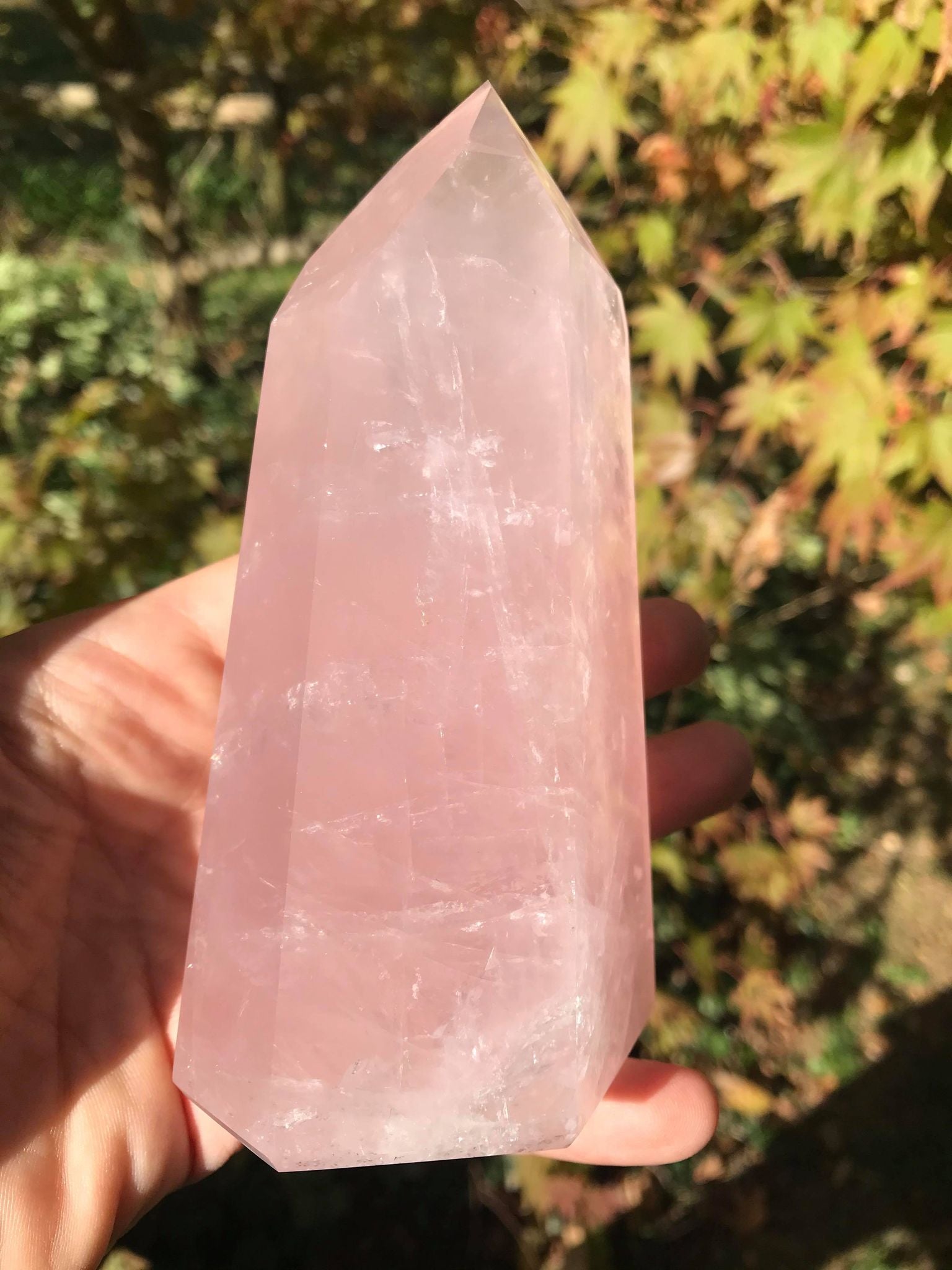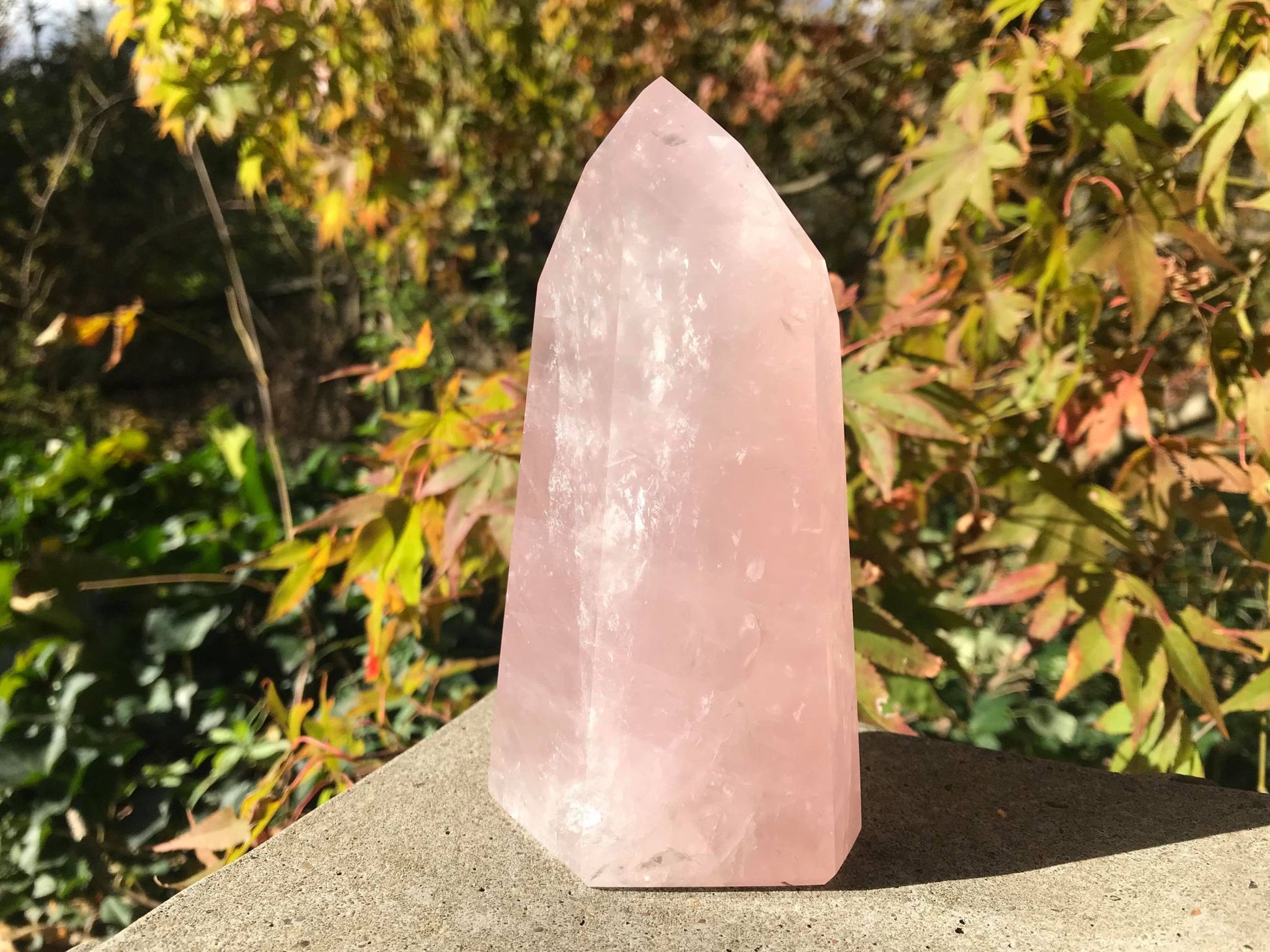 Crystal Lore: Rose Quartz is known traditionally as a crystal of pure love in all its forms. The energy of this crystal is very soft, gentle, silky and calming. A favorite tool of crystal healers, it soothes, opens and heals the heart and helps one cultivate self-love. It is also a popular stone for relationships. Place a Rose Quartz tower in your space to help attract more positive energy and love in your life.