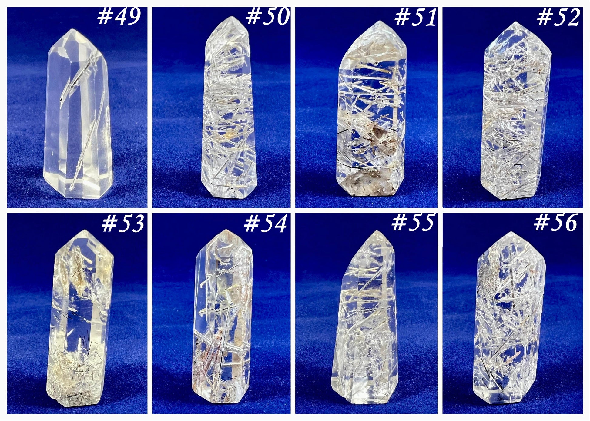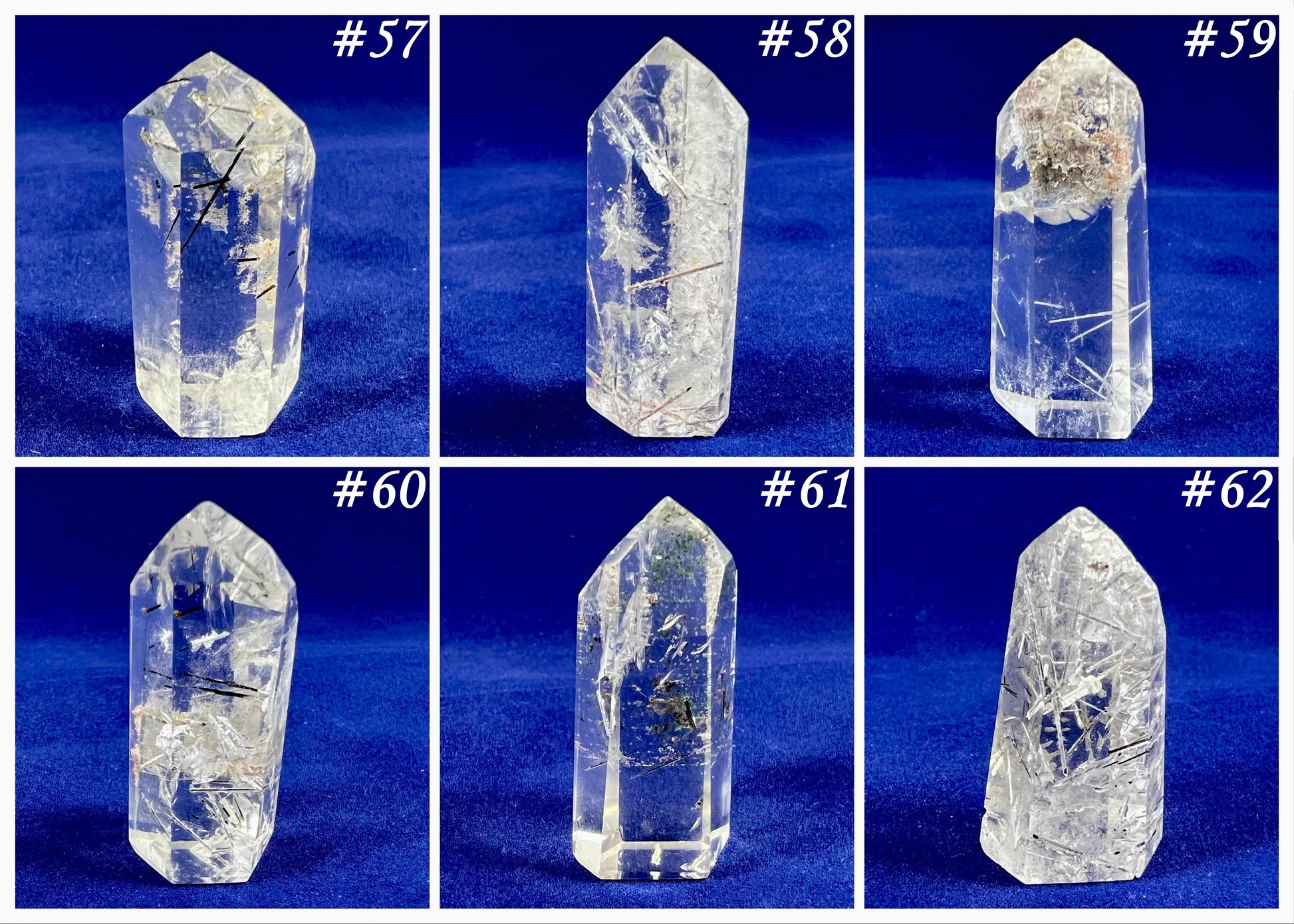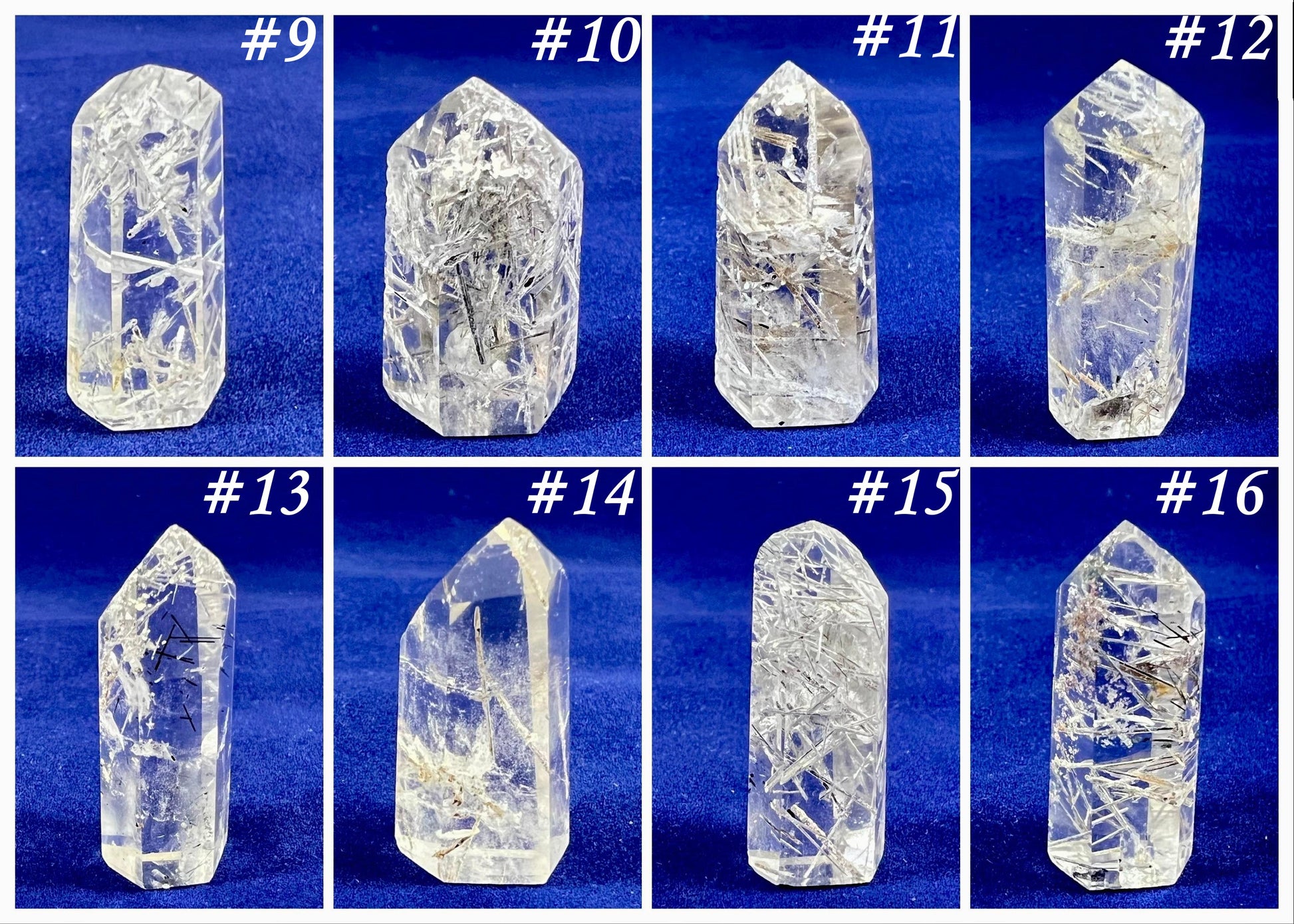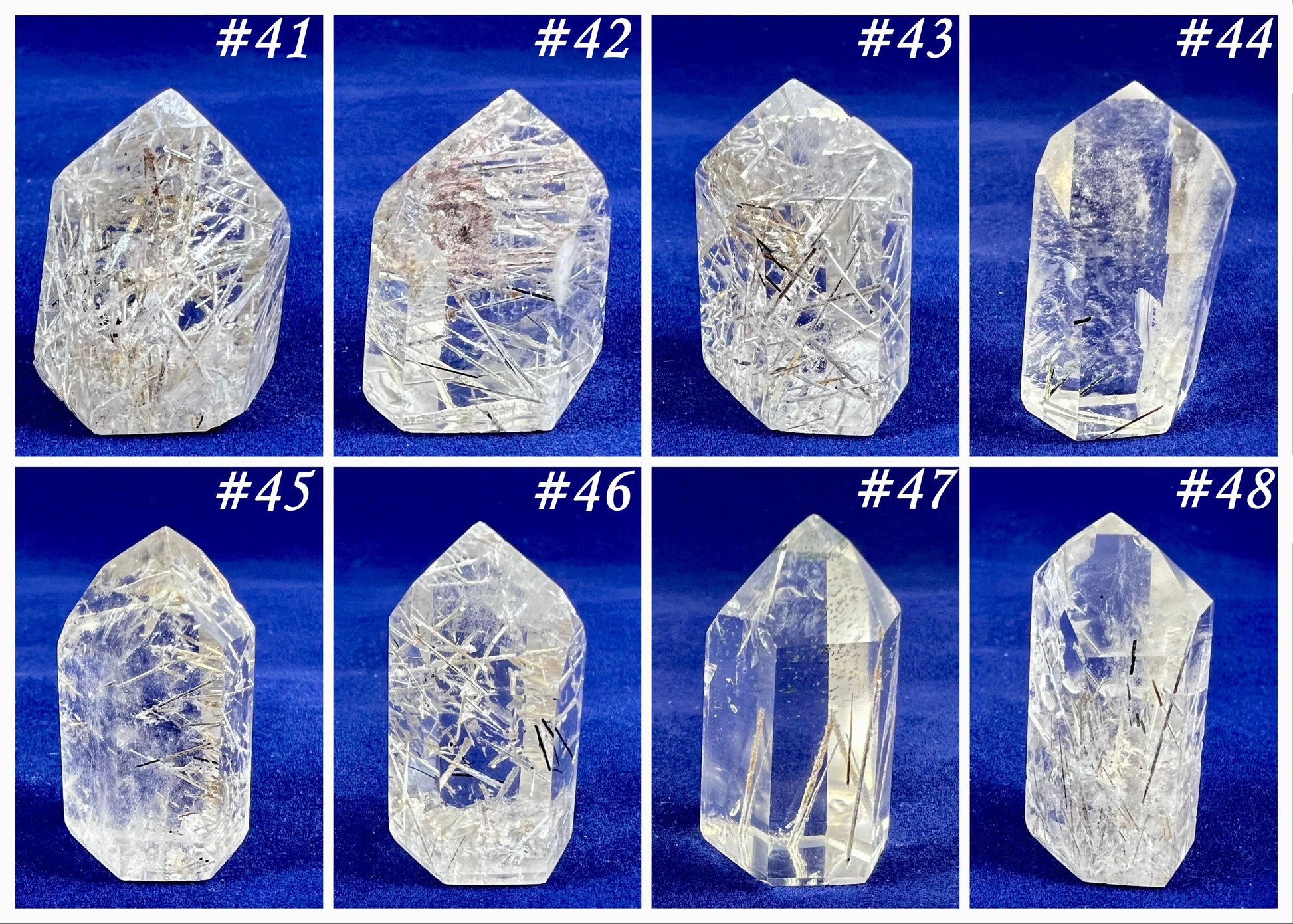 These pictures depict our current inventory and are numbered accordingly so that you can choose your crystal.