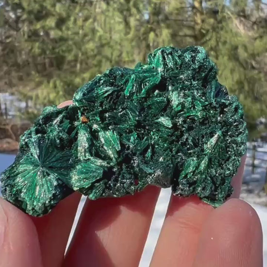 This silk Malachite specimen is such a beauty. Wonderfully natural and iridescent, it would make a fantastic addition to any crystal collection.